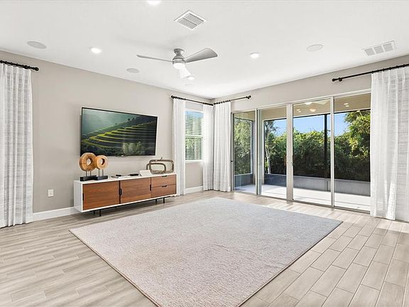 Discover this one-story home in the desirable Palisades community—a former model home that is highly optioned and thoughtfully designed. Offering 4 bedrooms, 3 full baths, and a spacious 3-car garage, this residence features an open floor plan enhanced by recessed lighting and a seamless flow between the living and dining areas. The beautiful kitchen showcases white cabinetry, quartz countertops, stainless steel appliances, a stylish backsplash, and an island with a sink and convenient seating. The primary bedroom is ideally positioned next to the primary bath, complete with dual sinks, a soaking tub, and a walk-in shower. Serene greenspace views create a peaceful, nature-inspired atmosphere right at home. Residents of this unique community enjoy exceptional amenities, including access to the Clermont Chain of Lakes with a private lakefront park, boat ramp, and dock, as well as a community pool, tennis and pickleball courts, and a basketball court. Palisades offers the perfect blend of relaxed living with finely crafted homes, all while being just minutes from Orlando, Disney World, and vibrant downtown Clermont. This former model home combines elevated comfort with an unbeatable location—don’t miss your opportunity to make it yours!