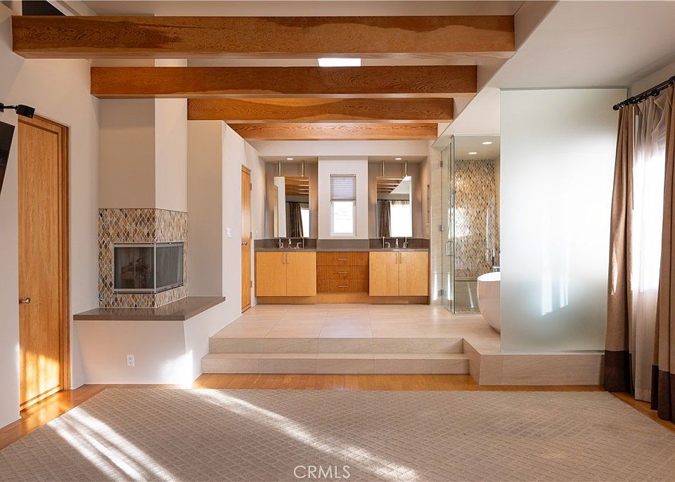 - Balcony, Beamed Ceilings, High Ceilings, Open Floorplan, Pantry, Primary Suite, Recessed Lighting, Walk-In Closet(s), Wet Bar
