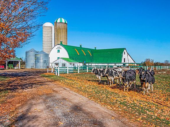Empty Dairy Farm on 154 acres located only 5 minutes North of the City of Peterborough. With the buildings situated far back from the road this farm offers the best of both worlds; a private spot to farm and close proximity to all amenities. This farm offers approx. 111 workable acres of loam soils, and a great set of well maintained buildings, including a dairy complex that can house over 100 head. The residence, a beautiful 4 bed/2 bath century home with 1980 log addition sits between mature trees and offers lots of updated living space with great views of the fields and barn. The house features wide plank floors and has been very well maintained, there is a family room with cozy fireplace as well as a partly finished basement. An added bonus is the in-ground pool that has been fenced in. The barn complex was used for dairy cows, but could easily be converted to many possible uses from storage, to housing horses, beef cattle, sheep or goats, the possibilities are endless. The main barn features 52 tie-stalls with an addition that housed the heifers which featured straw pens and an alley scraper, as well as 2 other additions with straw packs with access to the outside yard with belt feeder, 2 upright silos that are in working condition as well as 2 grain bins. There is an outside yard as well as a fenced in pasture. Supporting buildings include a 40' x 88' drive-shed for hay/straw/equipment as well as a 24' x 88' drive-shed with enclosed workshop. The land can be used to grow cash crops, graze animals or be rented out to local farmers. At the North end of the farm you will find your very own forest, great for the outdoor enthusiast and hunter! Priced to sell, come and discover this beautiful farm for yourself!