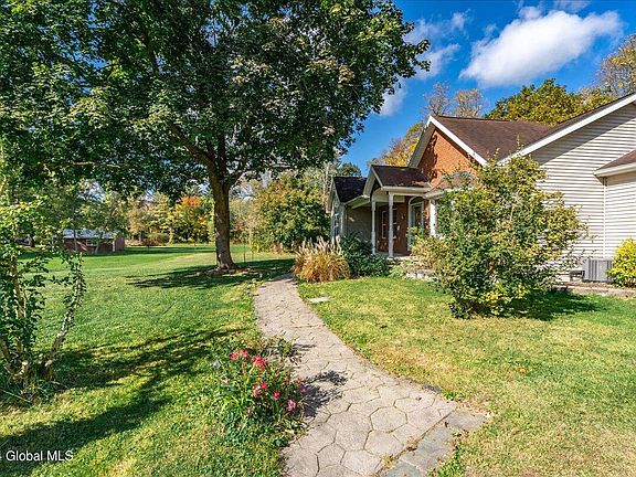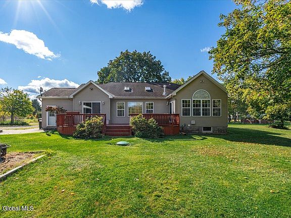 Custom built ranch on 5+ private acres w lg pond & orchard. Huge backyard w lawn extending into woods for hiking & wildlife viewing. 3 bds/2.5 baths, formal dining room, eat in kitchen & spacious open family family room w skylights & stone fireplace(gas fired).Laundry on main floor. Primary bdrm w ensuite bath & jetted tub. Large mud room w separate door leading to garage & d'way. Finished basement w wine cellar. Lg deck w luxurious 5 person hot tub. Oversized 25x50, 2 car garage w workshop area, wood-stove & 3rd garage door. New Septic, New Boiler, New C/A, New Culligan system & newer flooring in most areas. Bass & perch in the pond, Canadian geese visit annually to raise their young. Large variety of song birds along w red tailed hawks, owls, wild turkeys & doe & fawn. Nature abounds!!!