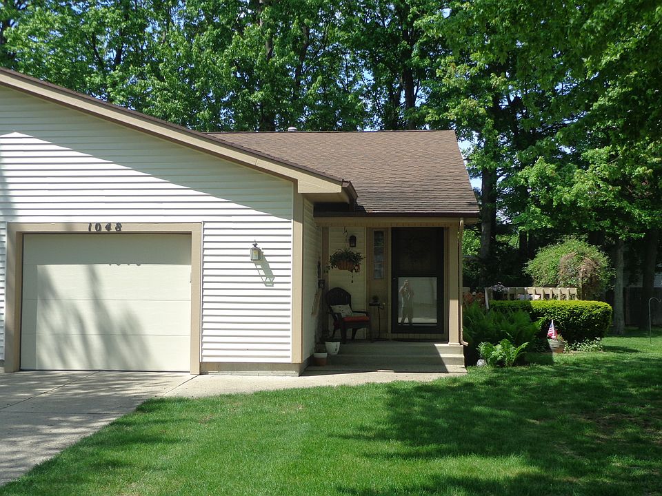 Adorable one level, 2 bed one bath condo with attached one stall garage. Many upgrades including fireplace, hidden screen door, new garage door with fob entry key, new flooring and kitchen and newer furnace. Great location near parks and shopping and walks. Best association pricing in County at $165 per month includes plowing and lawn care. This condo has been meticulously maintained and upgraded include the charming privacy deck trellis and built in storage in the garage! It is a must see