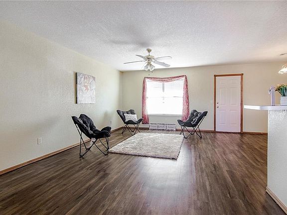This Home Wrote The Book On Open Concept!Located in the Moore School district, this one is move-in ready at its finest!Just load the moving truck after you see the fresh neutral paint and beautiful low maintenance vinyl flooring throughout the spacious living, dining, & kitchen.Open concept kitchen is equipped with gas stove, dishwasher, huge double sink, & adjacent interior laundry.Split floor plan offers generous size master suite with ceiling fan and private full bath/shower combo.Hall bath is flanked by ample size secondary bedrooms with plenty of closet and hall cabinet storage.Perfect size privacy fenced back yard is ready for play sets and all your pets. No maintenance worries with updated HVAC system, hot water tank, Other amenities include garage door lift, shopping/restaurants nearby, & only minutes to I-35 and I-240 which makes an easy commute to anywhere. Don't wait or it will be too late; put this one first & end your search. Information not guaranteed. Buyer must verify.
