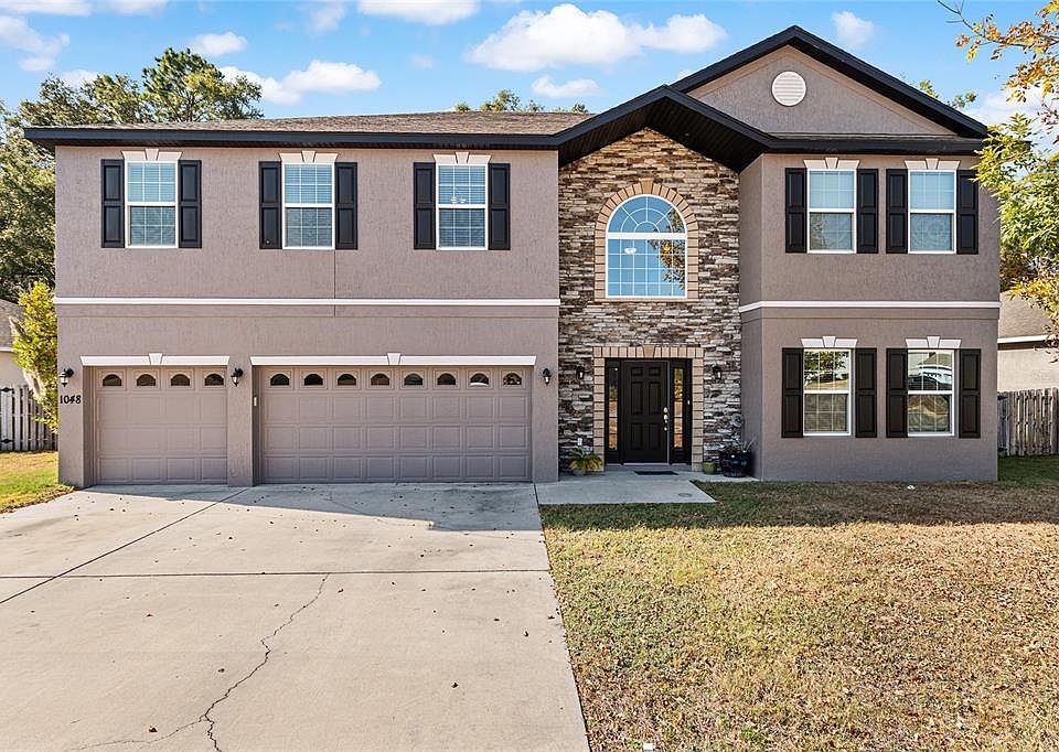 Welcome home to this modern yet spacious 6-bedroom, 4.5-bath home tucked at the very back of Newberry Oaks with no rear neighbors and peaceful wooded views. Offering rare privacy and ample room for everyone, this home features an open layout with flexible living spaces ideal for families, guests, or multi-generational needs. The kitchen is designed for both function and flow, complete with a walk-in pantry and a separate bar area—perfect for entertaining or everyday convenience. Upstairs, you’ll find the expansive primary suite as a true retreat with dual massive walk-in closets, tray ceilings, and a spa-style bathroom featuring a large soaking tub. Additional bedrooms plus an open and bright landing perfect for a home office, homework space, or play area. Downstairs bedroom and great room both have real 5/8" thick real bamboo flooring. Right off the kitchen enjoy Florida living on the large screened-in porch overlooking the fenced-in backyard—an ideal spot for relaxing, entertaining, or letting pets play freely. With no houses behind the property, you’ll love the quiet, private setting. Conveniently located near Newberry’s shops, restaurants, and schools—and NO HOA—this 6/4.5 home offers exceptional space, comfort, and privacy in a highly sought-after location.
