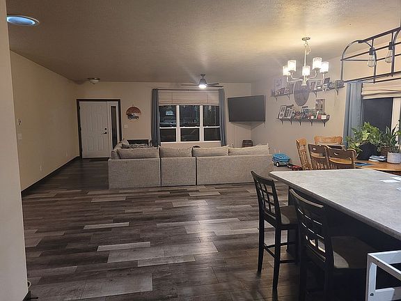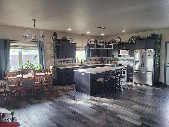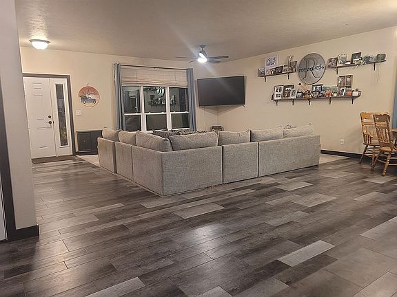 This large, cozy, modern home is looking for new owners! 2 bed, 2 bathrooms with large kitchen/dining/living room and laundry are located on the main floor. Master bedroom has it's own walk in closet and bathroom. In the basement is another large family room with projector, pool table, wet bar and additional 2 bedrooms, storage room, and bathroom. This home also features a deck extending from the kitchen as well as a walk out basement. Underground sprinklers, owned underground propane tank, a triple garage, extra parking pad are all included on the corner lot.
