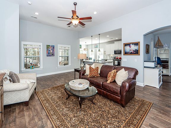 This beautiful like-new one story hardie plank home with hurricane proof windows & front porch features 3 bedrooms, 2 baths & attached 2 car garage. The large open floor plan showcases arched entries, high ceilings, eat-in kitchen with large island & separate dining room. Large screened porch opens to back patio & private tranquil fenced backyard with irrigation system. Custom designed closets in pantry, linen and primary bedroom closet. Laundry room has built-in cabinets. LVP and ceramic tile floors.