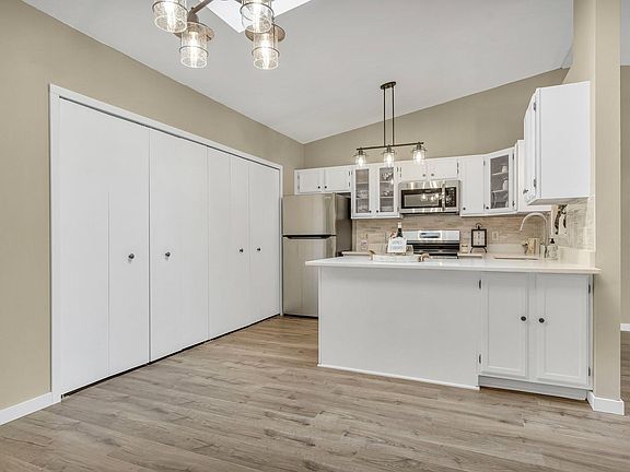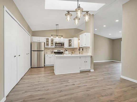 Flawless remodel that is turn key and ready to go!! Dream kitchen with quartz counter tops, breakfast bar, stainless steel appliances and new flooring throughout. Vaulted ceilings, private balcony, fully remodeled bathroom, huge walk in closet, white trim throughout and convenient (in unit) laundry. Tasteful selections with neutral tones, quality work and brand new windows. You will feel right at home in this bright space. Convenient location with easy freeway access, walking trails and parks. Enjoy your attached garage too! It can be difficult to find a completely remodeled home in this price range. Now put that home in a sought after complex with great amenities within walking distance and that is a rarity! Welcome home.
