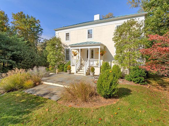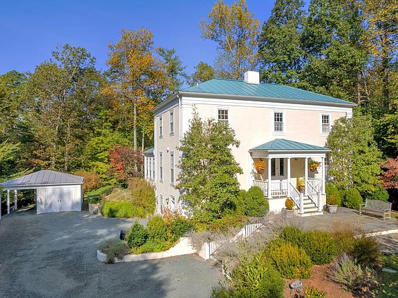 This home in Ivy sits on a private 3.59-acre lot. It boasts various features including a stunning blue stone front and rear patio. The interior has been remodeled, showcasing beautiful pine floors throughout the first and second floor. Additional highlights include a study with built-in bookcases, a living room with built-in bookcases and a wood-burning fireplace, and a fantastic kitchen with soapstone countertops, white cabinets, a farm sink, and an island. The breakfast area is connected to a vaulted sunroom with a ceramic tile floor, currently used as a dining room. The primary bedroom is accompanied by an attached bath with a brand new tile shower. On the second floor, you'll find two more bedrooms and a full bath. The basement features a fourth bedroom, currently used as a hobby room, a rec room, a half bath, and ample storage. Outside, there is a 1-car carport with an attached shed and a lovely blue stone patio. The property also offers incredible professional landscaping with a drip system sprinkler, a radon mitigation system, a generator, and a fantastic garden space. This unique home showcases architectural salvage elements throughout, including antique doors, mantles, and tub.