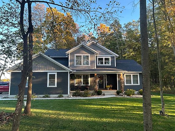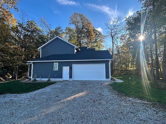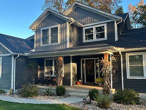 This stunning open-concept home features 3 bedrooms, 2.5 baths, and high-end finishes throughout. Enjoy tall ceilings, a real wood-burning fireplace, and a chef’s kitchen with quartz countertops, farmhouse sink, gas range, built-in microwave drawer, and walk-in pantry. The first-floor master suite offers vaulted ceilings, a freestanding soaking tub, double vanities, and a walk-in closet. Upstairs includes a loft overlooking the living room, plus two bedrooms and a full bath. Additional highlights include a mudroom off the garage, first-floor laundry, dining room with vaulted ceilings, and a back patio perfect for entertaining — all set on a peaceful 3-acre lot.