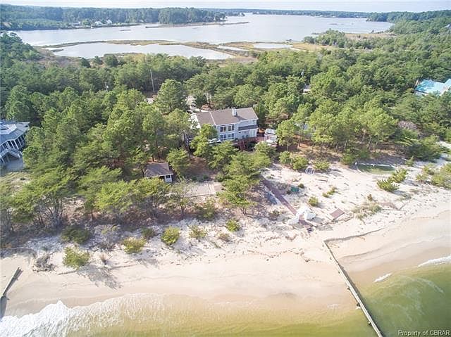 Embrace the beach life at this fantastic home! Located on a peninsula formed by the Chesapeake Bay, Little Wicomico River and Rock Hole Creek the private beach is wide and inviting. Enjoy amenities found few other places, including a waterside chipping green and a gazebo overlooking a bocce ball court. The huge waterside deck provides ample space for parties and dining. An awesome outdoor bathroom has a shower with solar hot water heater. The interior of the home features a wall of windows that bring the Bay into the living area. The open floor plan allows views from the kitchen and dining area as well. The coastal kitchen is bright and has granite counter tops. There are 2 guest bedrooms and a full bath on the first floor. The master bedroom has a balcony looking over the bay, a walk in closet and master bath with shower and tub. There is a waterside en suite guest bedroom too. There is an additional room that could be a 5th bedroom or office. Gravel paths wind through the beach forest with interesting sculptures and plants dotting the landscape. Raised bed garden and slat house are ready for green thumbs! 2 car attached garage. Community boat ramp and dock on Little Wicomico.