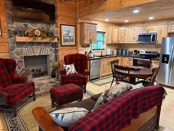 Open floor planWarm-inviting cedar aromaSpacious covered porchesPrimary bedroom downstairsKitchen with stainless appliancesOutdoor cooking grill