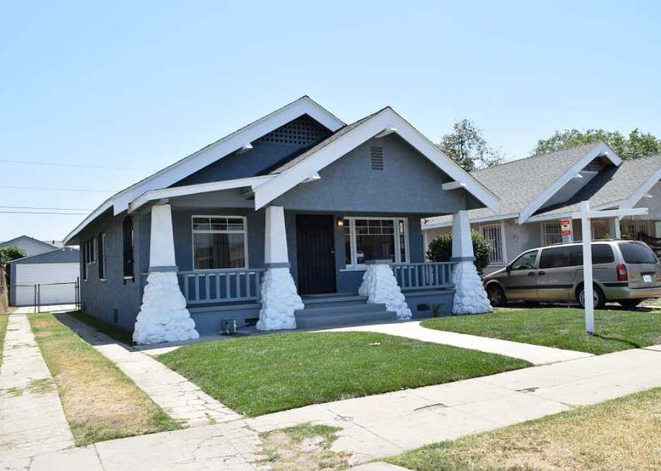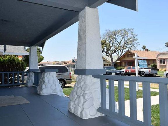 Bank owned. Beautiful classic Craftsman w/high pitched roof on quiet residential street west of Vermont. FHA/VA OK, seller will pay fees. New roof, kitchen w/all stainless appliances, bath, fixtures, spot lighting, paint in and out, floors, carpet, SOD, sprinklers, landscape, etc. Huge covered front porch, faux fireplace, formal dining room w/original built-ins, + separate breakfast area, and large laundry room. Long private driveway, 2 car garage, big private sunny south facing yard w/built-in brick BBQ, 40 x 122 street to alley lot. 2 blocks to 52nd St. Elementary, 4 blocks to Vermont Square Park and Library. 73 walk score (very walkable). 2-3 minutes south of USC and Coliseum, 5 minutes to downtown. Zillow predicts 7% appreciation for area next year. We already have termite report, seller will get the work done as soon as we open escrow.