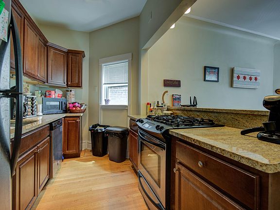 Attention Cubs fans! Grand Greystone on a tree-lined street in Wrigleyville/Lakeview, featuring a 1,500 square feet recently updated 4BR, 2 BA duplex with tons of charm and character. 4th bedroom works great as an office. New kitchen has granite countertops and S.S. appliances and a breakfast bar. Separate dining room! 3 HUGE BEDROOMS, perfect for working from home. New bathrooms w/granite & glass tiles. In-unit laundry, central air, hard-wood floors, a lot of natural light and sun through out! Private outdoor space in addition to shared backyard space. Garage parking space available for an additional fee. Act fast! Will rent quickly! Owners pays trash, water and sewer.