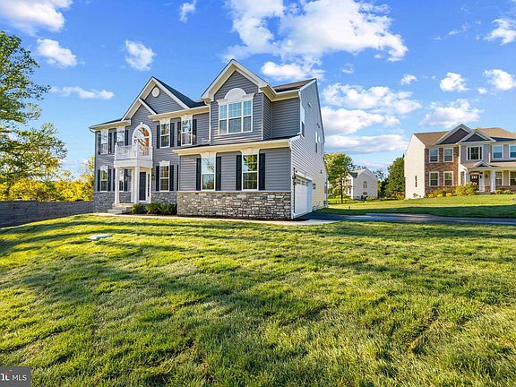 This 2025 Chamberlain III model by Dorsey Family Homes perfectly blends modern sophistication with thoughtful craftsmanship in the highly sought-after Turf Valley. Every detail of this home has been meticulously curated, showcasing upgraded moldings, recessed lighting, and elegant modern fixtures throughout. Step into the impressive two-story foyer, where a formal living room welcomes you to the left and a formal dining room to the right—enhanced by a tray ceiling, lower wall wainscoting detailing, a statement chandelier, and a chair railing for a refined touch. The oak staircase serves as a stunning centerpiece, setting the tone for the home’s elevated design. Continue into the expansive two-story family room, featuring a cozy fireplace and abundant natural light. This open space seamlessly connects to the gourmet eat-in kitchen, a true showpiece with dual-tone cabinetry, a central island with breakfast bar seating, pendant lighting, white shaker cabinets, stainless steel appliances, including a gas range and double ovens, a walk-in pantry, a tile backsplash, and quartz countertops. The adjoining sunlit breakfast room with exterior access provides the perfect setting for casual dining. A thoughtfully designed main-level in-law suite offers a large closet and dual access to a full bathroom—ideal for guests or multi-generational living. Upstairs, a lofted hallway with elegant arched cutouts overlooks the family room and leads to the luxurious owner’s suite, complete with a tray ceiling and a spa-inspired ensuite boasting a freestanding soaking tub, an oversized shower with a built-in bench, dual vanities, a separate water closet, and quartz countertops. Two additional bedrooms share a stylish hall bath with dual sinks, while the fourth bedroom enjoys its own private ensuite. A convenient laundry room completes this level. The fully finished, above-ground lower level extends the home’s living space, featuring a spacious recreation room with plush carpeting, a full bathroom, and walk-out access to the backyard—perfect for entertaining or relaxing. This level also includes a utility room for storage and two versatile bonus rooms, one with closets that can easily serve as a home office or guest bedroom. The flat and luscious backyard offers the opportunity to create additional outdoor living areas, such as a deck or patio.