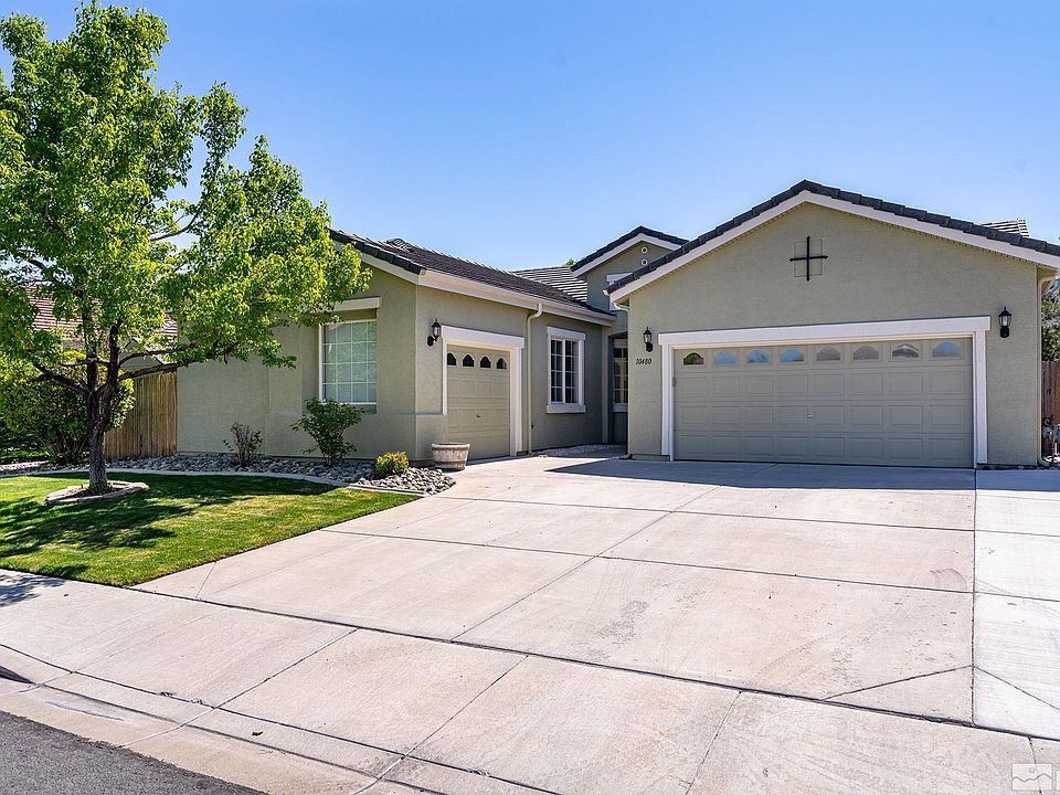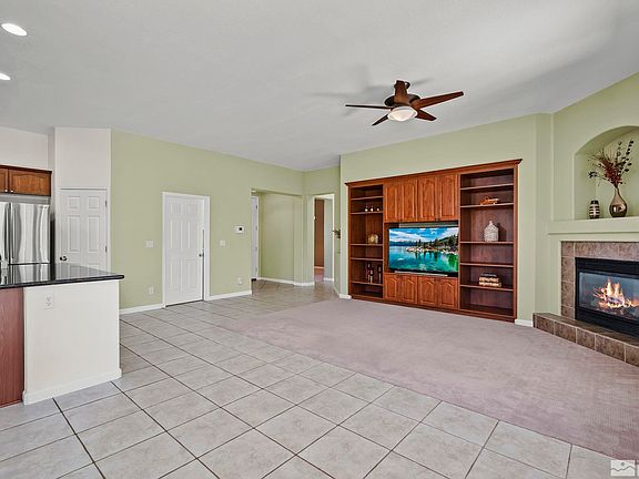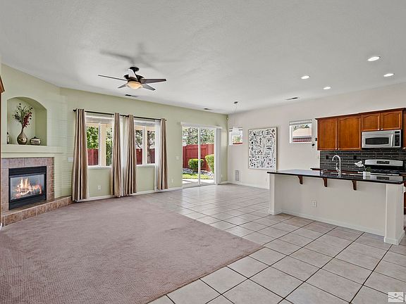 Pride in ownership shows in this wonderful, well maintained Damonte Ranch Village home. Beautifully landscaped with mature shade trees, bushes and fresh flowers. Extended driveway, perfect for RV parking. Great Room boasts high ceilings with inset lighting, tile floors and upgraded carpet & pad, built-in entertainment center, cozy fireplace, granite counters, glass backsplash, stainless steel appliances, center island with breakfast bar, breakfast nook and pantry., Slider glass door leads out to the covered stamped concrete patio and gorgeous backyard, perfect for family gatherings and entertaining friends. Separate Formal Dining area with soft lighting. Large Primary Suite highlights, french style doors, large California style walk-in closet, granite counter - double sink vanity, upright shower and garden soaker tub, upgraded plank tile surrounds and flooring. Second Bath features granite counter - double sink vanity. 3 car garage - spacious 2 car bay with epoxy floors and a separate 1 car bay, perfect for storage. Close to paths, parks, schools and shopping. Easy freeway access.