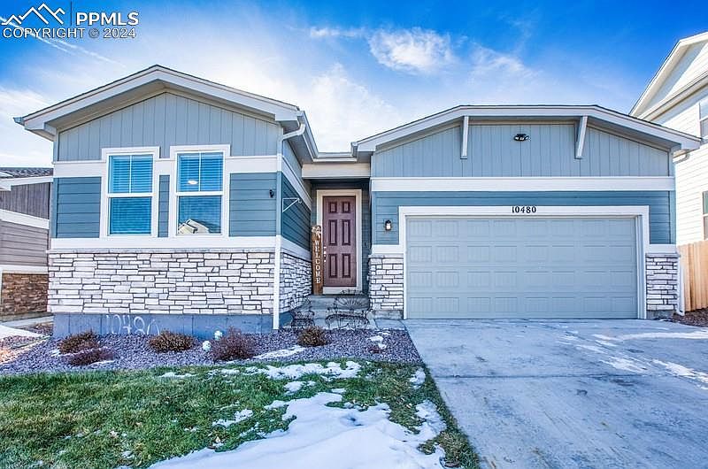 Beautiful Ranch-Style Home in Rolling Hills at Meridian Ranch by Century Homes 3 Bedrooms | 2 Bathrooms | 2-Car Garage | Ready for Electric Vehicle Charging Discover your perfect home in the highly sought-after Rolling Hills community! This property backs up to the greenbelt. This spacious, open-concept ranch home offers 3 bedrooms and 2 bathrooms all on the main floor, with a main suite that offers privacy and comfort. The upgraded kitchen features quartz countertops and sleek drop-in sinks, while the expansive walk-in pantry ensures plenty of storage space. Enjoy seamless living with a bright, open floor plan that flows effortlessly into the fenced-in backyard – perfect for outdoor entertaining. Room to Grow: The unfinished basement is already plumbed and ready for your personal touch, providing extra space for expansion, whether it’s additional bedrooms or a recreation room. Community Amenities: • Outdoor pool with beach entry • Indoor pool with water slide • Fitness center with free weights and cardio equipment • Sports courts for basketball, pickleball, and volleyball New recreational center being built just down out your backdoor. Located just 20 minutes from Colorado Springs, this home is ideally situated with easy access to major military bases, including Air Force and Army facilities. Don't miss out on this move-in ready gem in the heart of Meridian Ranch!