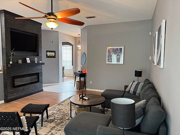 Welcome to BENT CREEK! This home is located in the desirable Bent Creek golf course community! This stunning property features 4-bedrooms, 2-bathrooms and is nestled on the 8th hole on the prestigious golf course at Bent Creek. Low HOA with a community pool, playground, and a newly renovated public golf course located in the community. This home offers breathtaking views and direct access to the greens. Enjoy the peace and quiet of this lovely community while being located with easy access to all that Jacksonville has to offer. Step inside to find a spacious and inviting layout with plenty of natural light and modern finishes. This home has a large family room that includes a cozy fireplace and offers privacy with an additional office/flex room with a formal dining room. The OWNERS SUITE and GUEST bath have been PERFECTLY RENOVATED. The Owners bathroom offers a large walk in shower with a beautiful vanity and new tile floors.