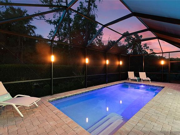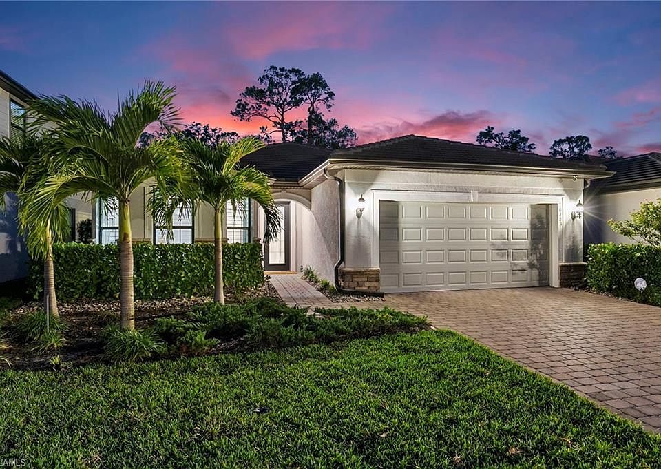 Experience modern coastal living in this 2023-built 3-bedroom plus den, 3-bath home located in Ventana Pointe, a peaceful, quiet, gated community in Naples known for its natural beauty and relaxed lifestyle. This beautifully designed residence blends comfort, elegance, and resort-style outdoor living—just a short drive to the Ritz-Carlton, Waterside Shops, Mercato, world-class dining, boutique shopping, and the Gulf’s white-sand beaches. Inside, an open-concept layout showcases abundant natural light and thoughtful upgrades. The gourmet kitchen features gas cooking, designer pendant lighting, premium appliances, and a spacious island ideal for gathering and entertaining. The den offers flexible space for an office, study, or cozy retreat. The primary suite serves as a serene private sanctuary with a large walk-in closet, a beautifully tiled shower, and double sinks for added luxury. Two additional bedrooms and baths provide comfort and privacy for family and guests. Designed for the Florida lifestyle, the expansive screen-enclosed lanai offers year-round enjoyment. A heated pool with color-changing lights sets the scene for day or evening relaxation, while the outdoor kitchen and ceiling fans make alfresco dining effortless. A lawn irrigation system keeps tropical landscaping lush, and plantation shutters adorn every exterior window, adding timeless charm and energy efficiency. Hurricane shutters provide additional peace of mind during storm season. Modern conveniences elevate everyday living, including a 2-car garage, EV charger, garage shelving, and a beautifully upgraded laundry room with custom built-in cabinetry and an additional storage closet for exceptional organization. Residents of Ventana Pointe enjoy a serene, well-located gated community close to Naples’ finest beaches, luxury resorts, shopping, dining, golf, and outdoor recreation. This home captures the best of Southwest Florida living—elegant, easy, and endlessly enjoyable.