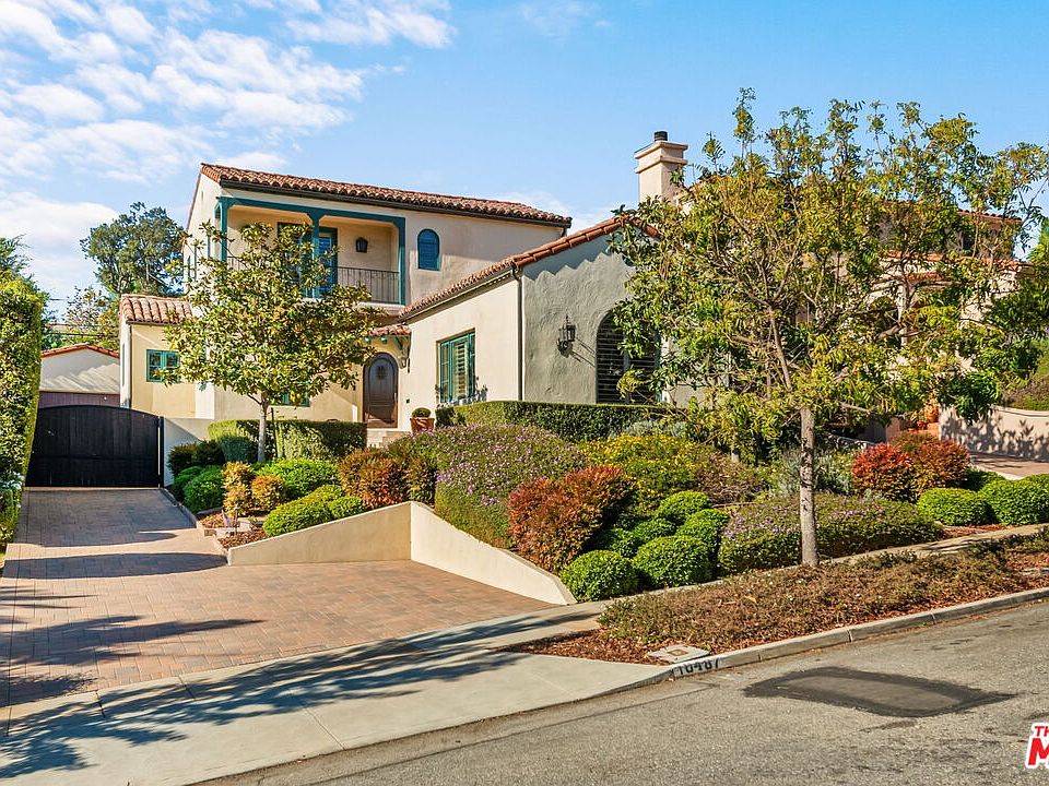 Meticulously restored and expanded 3 bed/3 bath Spanish. This designer finished property includes stunning unspoiled character and beautifully updated finishes throughout. Set privately off the street on a knoll lot, the beautiful curb appeal with newly updated hardscape and landscape. Spanish charm throughout, includes the step-down living room with vaulted and dramatic original wood-beamed ceiling, gas fireplace, sconces, bookshelf niches and picture window overlooking treetop views. Spacious dining room filled with natural light opens to totally remodeled chef's kitchen with quartz countertops, stainless steel Viking appliances and wine fridge, pantry closet and cabinet, stunning window overlooking back entertainer's patio and privately landscaped backyard with citrus tree and garden planters, and breakfast bar all opening to newly added sun-filled large family room with vaulted ceilings, and ideal flow to backyard through double French doors and access to the newly added 3/4 bathroom and full laundry room with storage. One bedroom with ensuite full bathroom downstairs, and 2 bedrooms upstairs including primary suite with French doors opening to front-facing balcony with beautiful treetop views, 2 closets including walk-in closet, and remodeled primary bathroom with dual basins and tile/quartz finishes. Additional features include hardwood flooring, triple-zoned central ac/heat, all LED recessed lighting, arched doorways, plantation shutters throughout. Gated driveway opens to rebuilt detached garage, newer paver-tiled driveway, drought-resistant landscape with drip irrigation. Ideally located close to UCLA, Westfield Century City Mall and Beverly Hills. Fairburn Elementary School. This one is a gem and not to be missed!
