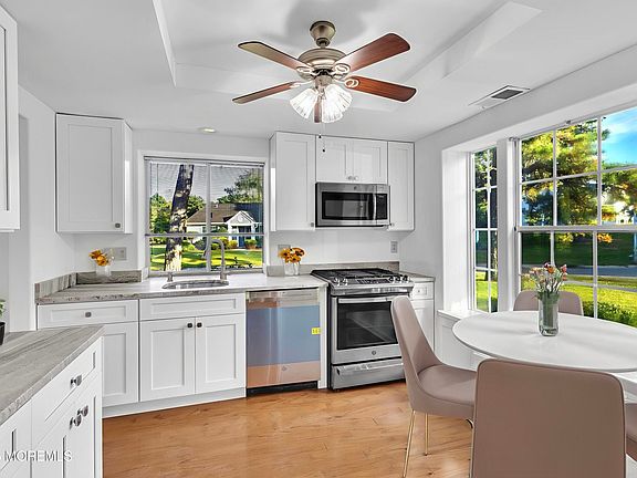 Welcome home to this beautifully updated home. As you step inside, you are greeted with the spacious living room with gleaming hardwood floors, anchored by a cozy fireplace, ideal for relaxing evenings or entertaining guests. The kitchen has been completely renovated with sleek cabinetry with modern hardware, granite countertops, stainless steel appliances and ample counter space and lighting. Both bathrooms have been fully upgraded, with lighting, plumbing fixtures, and thoughtfully selected tile work. The master suite offers a tranquil retreat, with generous closet space and a remodeled en suite bath. Step outside to enjoy the added privacy and space of your corner lot with outdoor seating, or simply soaking in the serene surroundings. Leisure Village West amenities complete this lifestyle: access to clubhouse, shuffleboard, golf, fitness center, pools, social clubs, and a maintenance program that takes care of the big items so you can enjoy your home worry-free. This home is move-in ready! Don't miss your chance to own a turn-key Savoy with elegance and comfort in every corner. Schedule your showing today.