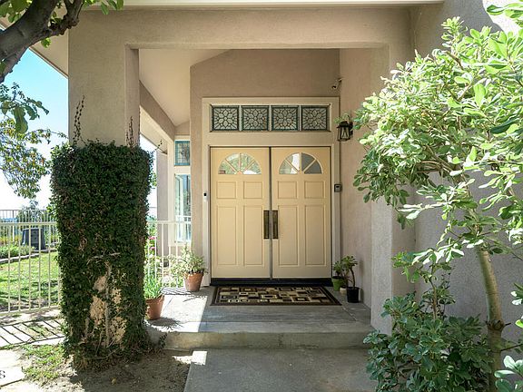 A rare opportunity to own a grand, two-story,Mediterranean styled home at the end of a private cul-de-sac on Calle Contento, within the highly sought-after community of Rancho San Rafael in the hills of Glendale. Many upgrades including, interior and exterior paint, carpeting, kitchen cabinets and tile roof have recently been completed. As you approach, a tree-lined driveway leads to the property and its spacious 3-car garage. Upon entering the home, you are greeted by the large marble foyer. The light-filled main level of the home features soaring cathedral ceilings and hardwood floors in the living room and dining area. The living room also features a stately stone fireplace. Adjacent to the dining area is the sun-filled kitchen and nook. The countertops are marble and the flooring is tile, both in warm grey hues. Accompanying the kitchen are double Miele ovens as well as a 6-burner cooktop and dishwasher. The family room, also with wood floors, built-in book case, features a brick accented fireplace, which is perfect for gatherings and relaxation. Additionally, there is a conveniently located downstairs bedroom or den/office and bathroom. You also have a good-sized laundry room. An elegant winding staircase leads to the second level where you'll find 4-bedrooms and 3 baths, including the primary suite, with soaking tub, shower, and walk-in closet. The primary suite boasts breathtaking views of the Verdugo Hills and the Downtown LA skyline. Another bedroom suite is connected to the primary suite, presenting a versatile space that can be used as a nursery, office, den or sitting room. The backyard patio and grounds provide a private retreat where you can bask in the beauty of the amazing hillside views with the Downtown LA skyline beyond. Undoubtedly, this home affords one of the most desirable locations in Rancho San Rafael. Ownership of this home grants access to the community clubhouse, pools, tennis courts, offering an array of recreational opportunities.