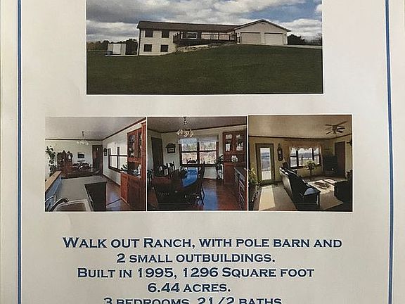 The home is a walkout ranch style with a pole barn and two smaller outbuildings. It has 3 bedrooms and 2 1/2 baths. With 6.44 acres you will have all the room for farm animals and garden areas that your family can enjoy. There are more than 50 fruit trees growing on the property. From the windows inside you can see the hills of orchards and farmland. In the evening you can sit on the front deck and enjoy many beautiful sunsets.
