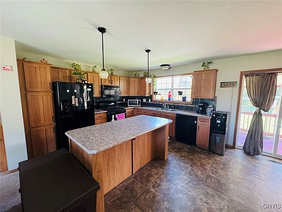 Enjoy one-floor living in this inviting 4-bedroom, 2-bath home with serene bucolic views. A brand-new paved driveway leads to the newly built detached garage with electricity, perfect for storage or hobbies. Recent updates include a new roof over both the front porch and rear deck, plus a recently replaced furnace and water heater for peace of mind. Inside, the spacious kitchen features a large island ideal for gatherings, while the primary suite boasts a walk-in closet, soaking tub, and separate shower. Three additional bedrooms, a second full bath, a laundry room, and open, comfortable living spaces complete the layout. With modern upgrades and a picturesque setting, this home offers both convenience and charm. Being sold to settle an estate.
