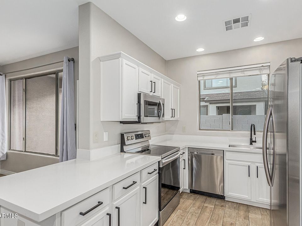 Your dream home is finally here! Discover this charming 3 bedroom, 2 bathroom property featuring a 2-car garage & beautiful stone accents in the Spectrum Community. You are welcomed by an impressive interior showcasing tile flooring, fresh soothing palette throughout, modern recessed lighting, & arched doorways. The stylish kitchen is ready for you to improve your cooking skills offering quartz counters, pristine white cabinets, a pantry, and sparkling stainless steel appliances. Main retreat enjoys a private bathroom equipped with dual vessel sinks & a perfectly sized walk-in closet. The quaint backyard is ready for you to host fun gatherings! What are you waiting for? Don't let this home pass you by!