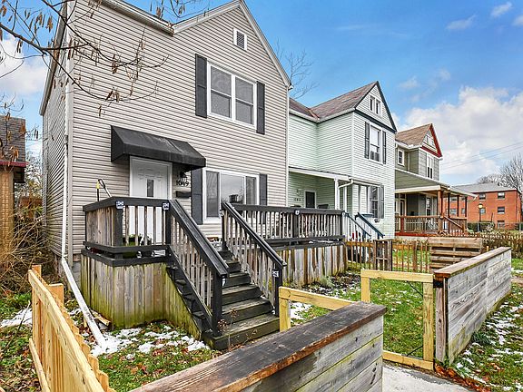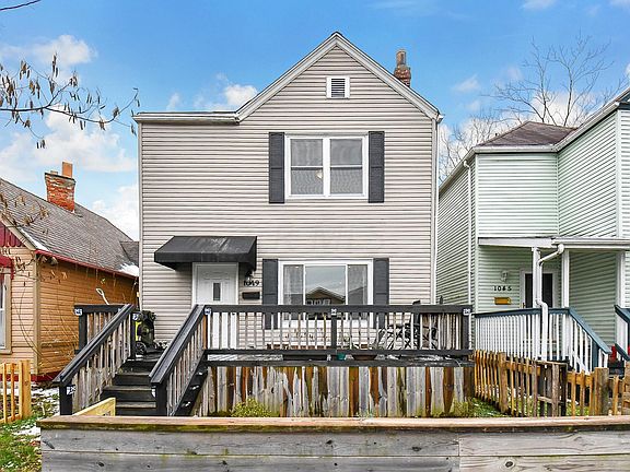 Beautifully updated home in the heart of Olde Towne East. Spacious open floor plan perfect for entertaining. Inviting full front porch, great room with loads of natural light opening to the dining space and the fully remodeled kitchen featuring stainless appliances and opening to the backyard with large deck and pergola. 1st floor half bath & laundry. New wood laminate flooring and fresh paint through-out main floor. Upstairs you'll find a large master bedroom with full bath, 2 additional bedrooms and full guest bath. Low maintenance exterior, new windows, shed and fenced yard. Great walking community close to restaurants and Franklin Park Conservatory. First American Home Warranty.