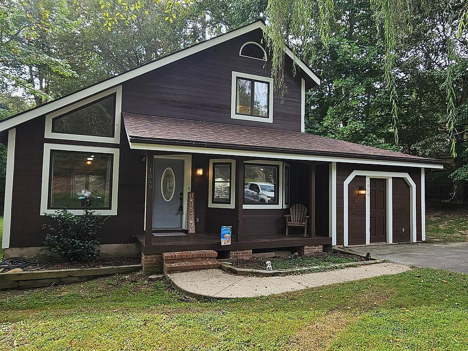 Welcome to a charming blend of comfort and character in this updated 3-bedroom, 2-bath home tucked within a water access community. Step onto a cozy front porch before entering a warm and inviting space accented by striking wood beams in the main living area. The open concept layout connects the living and dining rooms seamlessly, complemented by wood flooring that runs through to the kitchen. The kitchen has been thoughtfully updated, offering modern function with timeless appeal. The spacious living area leads to a nice-sized deck—perfect for morning coffee or evenings under the stars—with access from both the living room and the primary bedroom. Speaking of the primary suite, it’s conveniently located on the main level, boasting an updated bathroom for added privacy and comfort. Upstairs, two additional bedrooms have been refreshed with new flooring and offer peaceful retreats for guests or home office space. Updates throughout the home mean you can move right in and start enjoying the upgraded heating and cooling system, refreshed exterior with new stain and trim, and improved crawl space insulation with moisture control improvements. Whether you’re drawn to the peaceful setting, the smart updates, or the community’s water access perks, this home manages to offer both style and practicality—without taking itself too seriously. Come see how easy living can be when a house feels just like home.