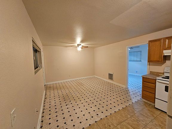 First level unit in a multi-family. Freshly painted apartment with new flooring. Close to downtown, freeways, and grocery. Spacious place for a small family or a couple. Has refrigerator, A/C, heating. Street parking available. Ceiling fans in every room. No washer or dryer on site. Most families have been living here for more than 2 years