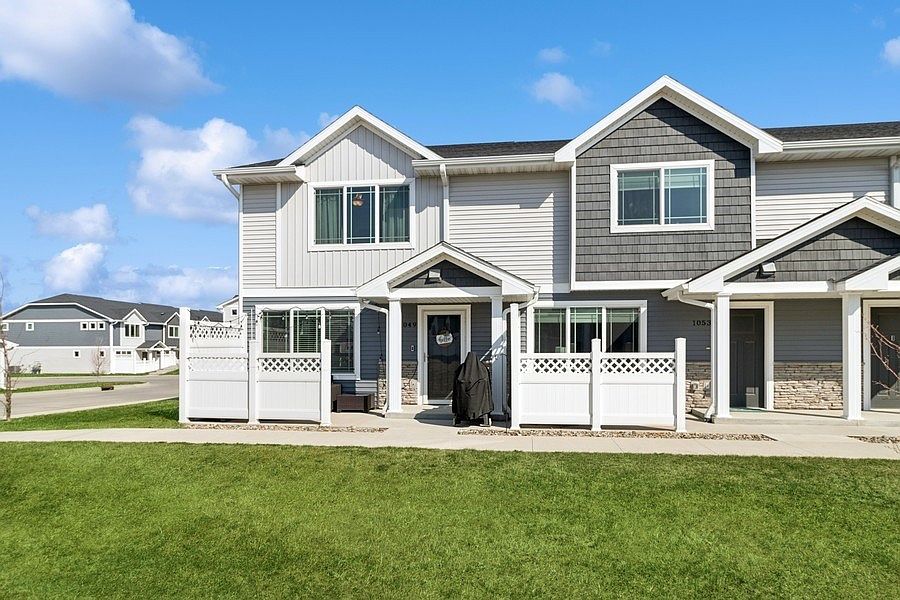 This adorable end unit town home is move in ready! As you walk-in, the natural light is incredible and finishes are all stylish. Stone surround fireplace, nice sized family room, white wood blinds, and neutral colors. Kitchen is spacious w/LVP flooring, white cabinets, island, quartz counters, and SS appliances to include upgraded fridge. Pantry has wood shelving, and eat-in area is nice sized, w/easy access to a 1/2 bath. Storage closet off of kitchen has lots of extra space, and close proximity to zero entry 2 car attached garage with shelving. 2nd level primary suite is large and has walk-in closet, extra transom windows, bathroom w/double sinks and stylish mirrors. 2nd bedroom has a Murphy Bed so you can have guests as well as a home office. 3rd bedroom has adorable board and batten wall. Laundry room is trendy with shiplap wall, cabinets above washer/dryer and shelving. Full hall bath is nice sized with LVP flooring. Enjoy your coffee on the front porch patio area which has a privacy wall. This townhome is perfect, and close to trails, parks, and shopping.