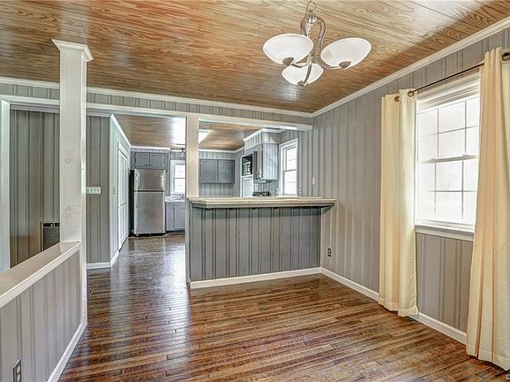 Cute as a button home set on 5+ acres! 3 bed/1 bath, open concept, modern farmhouse style with upgraded finishes. Brick floor, wood ceilings and slate baths are just the start. Huge detached workshop with power. Huge back deck and a great yard.