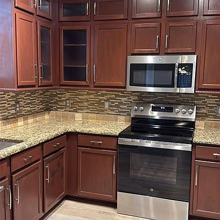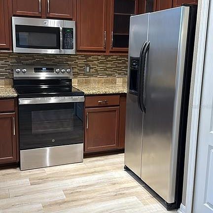Granite countertopsCorner townhomeModern kitchenSpacious florida roomElegant laminate wood flooringStylish tile backsplashTwo walk-in closets