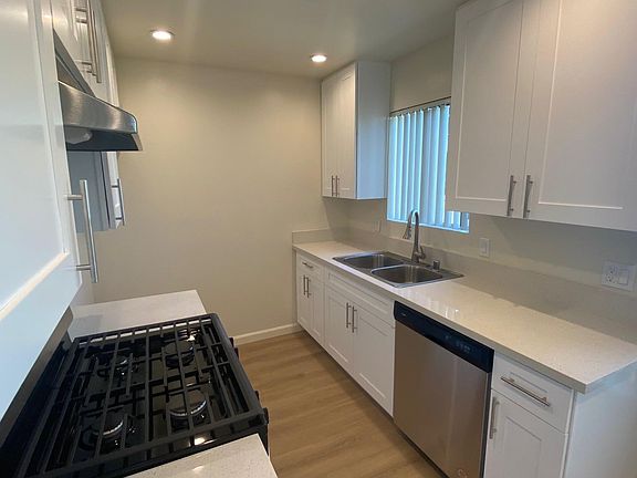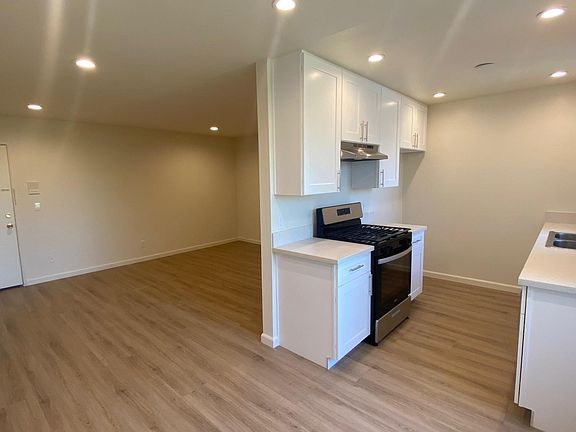 Unit 210 is a newly remodeled 1 bedroom / 1 bathroom apartment on the top floor with a spacious floor plan ready for immediate move in for qualified tenant(s). The unit has newer recessed lighting, newer vinyl wood-plank flooring (throughout the entire unit), newer kitchen cabinets with quartz countertops, new stainless steel kitchen appliances (including gas stove range, hood, dishwasher), central A/C and heating. Conveniently located to transits, school, library, supermarkets and the freeway.