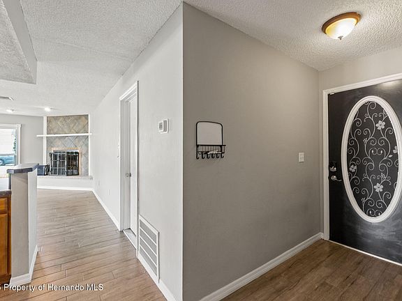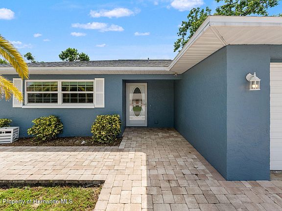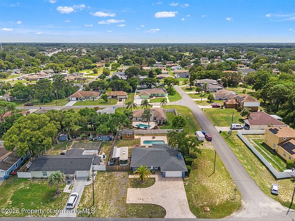 Welcome home to this stunning 3-bedroom, 2-bathroom, 2-car garage residence sitting on a spacious 1/3-acre corner lot, offering the perfect blend of style, comfort, and upgrades. Enjoy resort-style living with a saltwater pool, surrounded by a paver patio, perfect for entertaining or relaxing by the built-in firepit. The fully fenced yard offers privacy and security, while the finished shed with A/C provides an ideal space for a workshop, office, or storage. Pulling up, take notice of the extended paver driveway and curb appeal! Inside, be greeted with gorgeous wood-look tile floors, an open concept kitchen, with stainless steel appliances and an open floor plan. The living and dining spaces open to the kitchen and outside, for the perfect blend of indoor / outdoor living, featuring a wood burning fireplace and natural light! Both spare bedrooms are comfortably sized and have large walk-in closets, sharing a guest bathroom featuring a shower / tub combo. The owners retreat, is tucked in the back of the home, for ideal privacy and has an attached ensuite bathroom, with his and hers closets. Some other great additional features? Newer hurricane rated windows and screen door (2022), an extra storage shed, keyless entry and camera system, and major updates including a newer roof (2022) and A/C (2024)—making this home move-in ready and worry-free. Don't miss this one-of-a-kind gem in a sought-after location. Schedule your private showing today!