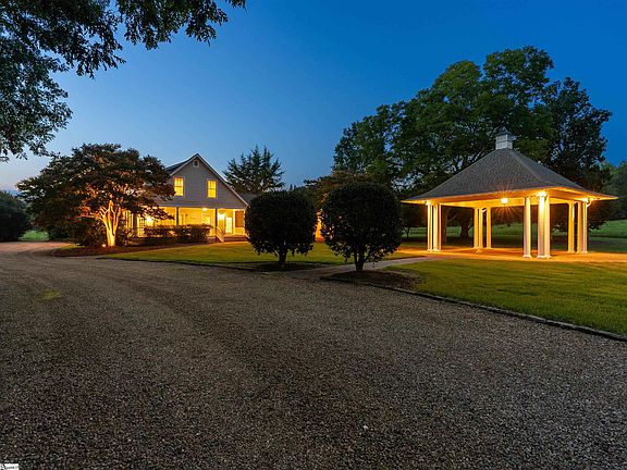 Professional photos will be released 8/19/25. Welcome to Lenora’s Legacy — a premier Southern estate rooted in history, thoughtfully reimagined for modern life or elegant entertaining. Originally built in 1910 and taken down to the studs and renovated in the early 2000s, this home offers a rare blend of timeless craftsmanship and high-end comfort, all set on 7.64 acres of pristine, landscaped countryside in Campobello, SC. Whether you envision a turnkey wedding venue or a peaceful private homestead, Lenora’s Legacy is ready. The home sits among mature pecan trees (some well over 100 years old), crepe myrtles, oaks, figs, and lush gardens fed by a commercial-grade irrigation system. Paver entrances, pea gravel driveways, stacked stone columns, and an ironwood railing system set the tone before you even step inside. Inside, you'll find old growth heart of pine floors, 10-foot ceilings, a split staircase with heart of pine treads, and gorgeous woodwork throughout. The kitchen is truly a showpiece—Wolf 5-burner gas range, Sub-Zero refrigerator and freezer drawers, Perlick nugget ice maker, double wall ovens, two warming drawers, GE Profile hood, Bosch dishwasher, prep sink, and brand new (July 2025) honed quartzite countertops—a rare find at any price point. The spacious dining room opens to the kitchen for effortless entertaining. The living room features built-ins, a gas log fireplace with the original 1910 mantle, and incredible light throughout. This property’s outdoor living spaces and storage opportunities are unmatched. A 19' x 19' gazebo with paver floors, power, and concrete-filled columns could one day be a showstopping pool cabana. The "Country Store", originally used for weddings, features pickled pine floors and walls, Trex decking, mini-split HVAC, and makes a perfect playhouse, studio, or gift drop-off area. The Peach Shed has hosted countless weddings and features a full stage, heart of pine dance floor, handicap ramp, ambient lighting, a women’s restroom with 5 stalls, men’s restroom with three stalls, food service area, and multiple storage rooms. The venue easily accommodates weddings of up to 350 guests, and the main house provides an elegant and comfortable retreat for the wedding party to get ready and stay overnight. New carpet installed upstairs (June 2025), and the home has been immaculately maintained. Additional features include: Solid wood doors throughout, Tendura tongue-and-groove porch floors for long-term durability, Half-round gutters, Utility/storage barn off the main hous, and Hundreds of thousands invested in landscape design and infrastructure. Lenora’s Legacy is a remarkable opportunity to own a piece of Southern heritage, complete with modern systems and endless potential. Whether you're ready to launch a luxury wedding venue, host unforgettable gatherings, or simply enjoy a home with the peace and beauty of Campobello living, this one-of-a-kind Gowensville estate is ready to welcome you home. The property is offered three different ways with different combinations of property and structures. The main home is included in all listings.