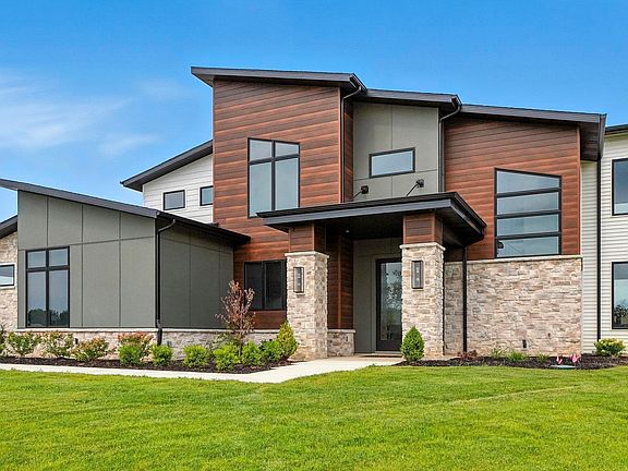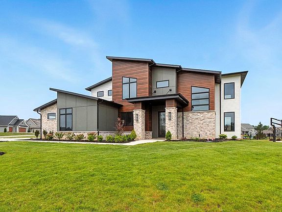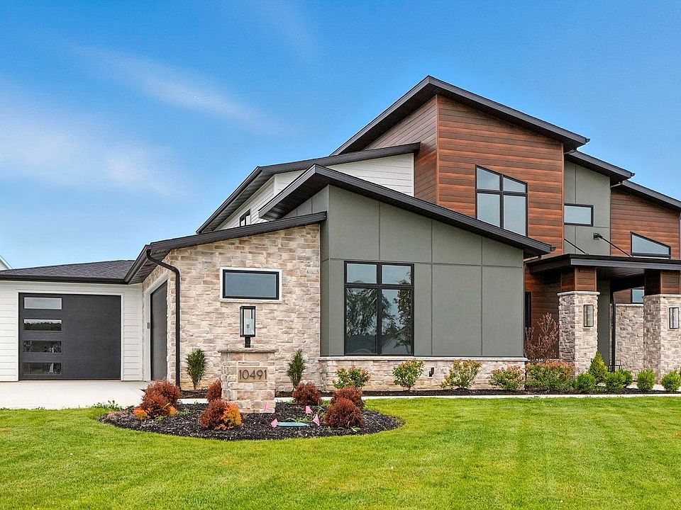 Luxury Modern New Construction Home in Leo, Indiana – by Timberlin Homes. OPEN SUNDAYS from 1-4 pm! Discover the pinnacle of contemporary luxury with this brand-new modern home by Timberlin Homes, located in the sought-after Leo, Indiana community. Designed for elegance and functionality, this upscale residence showcases high-end finishes, open-concept living, and premium craftsmanship throughout. Sophisticated Design & Premium Features - Step into an expansive light-filled living area featuring floor-to-ceiling windows and a striking stone fireplace with floating built-in shelves—the perfect blend of style and comfort. The gourmet kitchen is a chef’s dream, boasting a top-tier Monogram appliance package, custom cabinetry, natural stone countertops, and a handcrafted zinc range hood. A walk-in pantry with extensive shelving provides ample storage, ensuring organization and efficiency. Indoor-Outdoor Living at Its Best - The dining area opens through 8’ double sliding doors to a covered veranda, offering a seamless transition to outdoor living. The primary suite also enjoys veranda access, enhancing the connection to nature. This luxurious retreat features a spa-like ensuite with a tiled walk-in shower with rain head, a soaking tub, and an expansive walk-in closet. Flexible & Spacious Layout - A main-level flex room offers versatility—perfect for a home office, study, or cozy sitting area. Upstairs, three additional bedrooms provide generous space, while a bonus room serves as a potential fourth bedroom, media room, or entertainment space. Smart Home Technology & Modern Conveniences - This home is designed for effortless luxury living, featuring a comprehensive security system, high-quality sound system, and an efficient irrigation system. Thoughtful details, including custom lockers in the laundry room, enhance both style and functionality. Embrace the perfect blend of modern design, comfort, and smart-home innovation in this stunning Leo, Indiana new construction home. Schedule your private tour today!