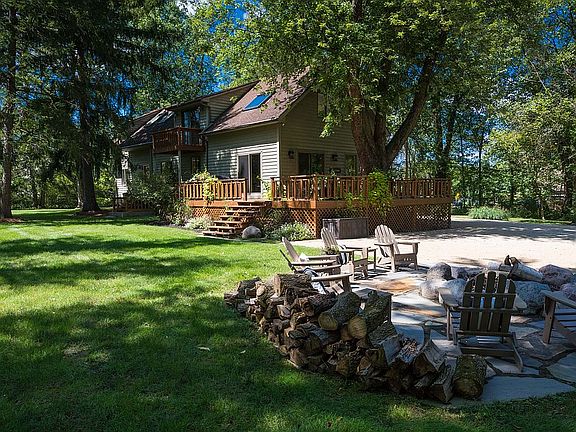 In Contract - Open House on 9/12 has been canceled. Your own 3.8 acre wooded family retreat in the middle of Powell, in one of the most sought after school districts, within walking distance to Tyler Run Elementary and access to Liberty Middle School and Liberty High School. As you drive onto this beautiful wooded property, 100 year old silver maples greet you, leading to a sprawling yard with a large stone fire pit and an orchard including peach, cherry, pair and apple trees. Beyond the orchard is an impressive treehouse with a trail wandering into several acres of woods. The sprawling deck built around a massive silver maple is the perfect place to spend weekends and evenings with family and friends overlooking the natural fire pit, a grove of tall pine trees with one of the original historic Liberty wood barns with hand hewn beams in the background, completely surrounded by trees. Inside the house you will find a charming wood burning stove as the centerpiece of the living room with original wood floors and natural light streaming in from the vaulted ceilings above with large skylights. The kitchen with quartzite counters opens up to the family room looking out to park-like views on all sides. The first floor has an office that could be used as an additional bedroom and the bathroom has a cast iron clawfoot tub adding to the historic charm of the property. Upstairs you will find three bedrooms and a sitting area with sliding glass doors leading out to a balcony overlooking the tall stand of pine trees and the historic wood barn. The bathroom with a beautiful walk-in shower is bathed in natural light from the skylight overhead. Additional skylights scattered throughout the upper level provide natural light to most of the house. The basement is mostly finished with French doors that provide lots of natural sunlight. There is plenty of room for recreation, storage and a workshop. There are gorgeous, treed views from every window in this house. Most of the property is wooded, adjacent to other large wooded lots creating a sizable corridor for wildlife where deer trails are plentiful. A charming path provides access to bow hunting and other outdoor adventures. Retreat to your own slice of heaven less than a mile from downtown Powell with quick access to SR 315. This type of property is a rare find in Powell with so much access to the outdoors.