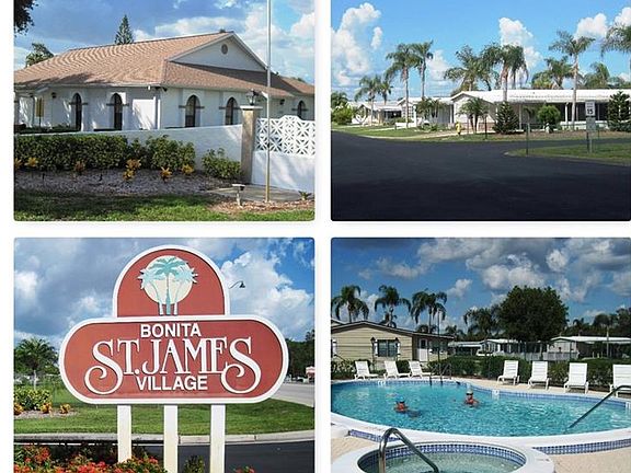 Manufactured home located in a Fabulous 55+ community in the heart of Southwest Florida! Property offers 2 beds & 2 baths separated for privacy, living room, full sized kitchen with dining area, heated and air-conditioned Florida Room & laundry/storage/work room. Windows replaced! Interior flooring updated! Carport tiled in case a patio is more important than covered parking! Purchase includes a Co-Op ownership share in Bonita St. James Village. Monthly HOA of just $95! Where else is paradise so affordable?! HOA fee covers a community pool, spa, community center, trash, lawn maintenance (inc mowing, edging, (2) tree maintenance) roads, fenced storage area and other common expenses. Minutes to dining, post office, Bonita Beach and shopping. Come and experience the climate, history, culture and nature of paradise! Restrictions require one resident must be age 55 or above, the other may be age 45 or above. 118 homesites, approximately 1/3 occupied fulltime. Leasing w/restrictions. Pets w/restrictions. On-site management.