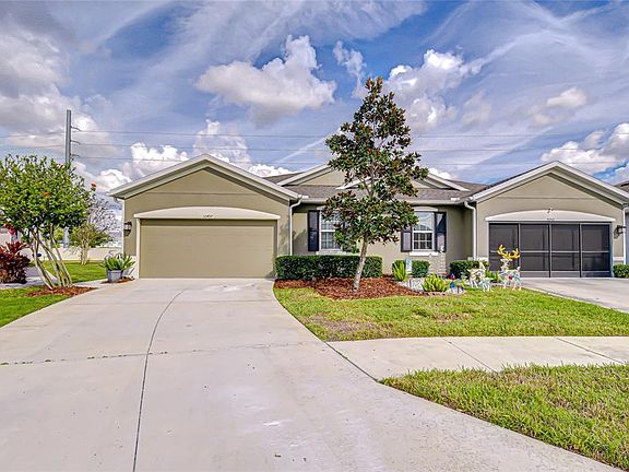 Discover your modern sanctuary, where Florida indoor/outdoor living is effortlessly perfected in the desirable Cypress Preserve community. This paired villa was built in 2019 and features a clean, contemporary design with soaring 9'4" ceilings and 1,532 square feet of open living space. A contemporary color scheme and front and side windows with shutters provide instant curb appeal, framed by beautifully maintained landscaping set on a generously sized, pie-shaped lot with extra space between you and your neighbor. Step inside to a foyer that opens to a versatile front room with double doors, ideal for a private office, playroom, third bedroom, or a guest suite. The heart of the home is an open-concept great room and kitchen, creating the perfect hub for daily life and entertaining. In the large gourmet-style kitchen, tall espresso raised panel cabinets are accompanied by granite countertops and a large, eat-at island with a stainless steel double sink and dishwasher, pendant lighting, and space for bar seating for casual dining. A full stainless steel appliance suite—including a smooth-top range, microwave, and side-by-side refrigerator—are complemented by two spacious closet pantries and a dedicated dining space. Just off the great room, sliding glass doors lead to a screened-in lanai, inviting you to relax and enjoy the tropical scenery of your oversized, 6' high fenced-in backyard. Beyond the lanai, an open patio awaits, perfect for grilling and outdoor parties. The yard is also primed and ready for the addition of a pool or spa, with connected hookups already in place. Designed as a three-way split bedroom plan for maximum privacy, the primary suite is a true retreat. It boasts a large walk-in closet and an ensuite bath featuring a granite counter with undermount double sinks, a double vanity, and a glass-enclosed tiled shower with a stylish Listello pattern. A third bedroom is located on the opposite side of the home and is served by a second full bath with a linen closet. A convenient laundry room is located off the 2-car garage, which includes a rear storage space. The washer and dryer are included with the home, making this truly move-in ready. Beyond your private oasis, the Cypress Preserve community offers resort-style amenities, including a zero-entry pool with a covered cabana, a playground, a dog park, an event lawn, and scenic walking trails with conservation and water views. This move-in-ready villa home offers a lifestyle of comfort and convenience in a sought-after community. Don't miss the chance to experience this exceptional Cypress Preserve home—schedule your private showing today and step into your new life!