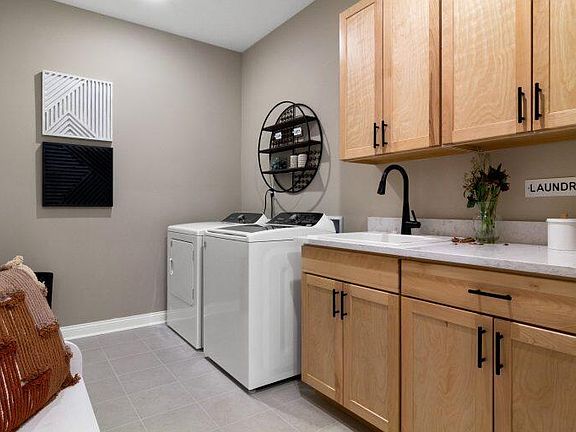 Welcome to the Carlisle. As you step through the front door, you're immediately greeted by the open-concept first floor and the 9 foot ceilings. To your left you'll find the flex room. The great room is open concept. Adjacent to the great room is the kitchen and a Sunroom. This modern kitchen boasts luxury vinyl plank flooring, 9 ft Granite Kitchen Island w / 10in overhang, 42 inch upper cabinets, and soft close cabinets. The breakfast room or the Sunroom, an ideal spot for casual dining. Conveniently located on the main floor is the laundry room, making laundry day a breeze. There is a powder room on the main floor. As you make your way up the stairs, you'll find yourself in the loft, a flexible space that can be used as a secondary living area. The upstairs primary bedroom is a true retreat, featuring a 2 stepped Tray ceiling, 2 walk in closets, a spacious layout & a luxurious ensuite bathroom. The walk-in closet offers plenty of storage space. In addition to the primary bedroom, there are three more bedrooms on the upper level. These bedrooms share a full bathroom. The Carlisle also features an expanded basement with a 3 piece rough in for a future bathroom. The 90% high-efficiency furnace and A 50 gallon water heater. The exterior of the home is just as impressive as the interior, with professional landscaping that enhances the home's curb appeal. Home also has a 16x16 concrete pation in the back. The two-car garage provides ample space for parking and 3 car width driveway. Photos depict the model home with the same floor plan, showcasing variations of finishes.