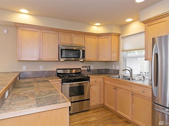 Located in vibrant Madison Valley, this townhome is privately nestled among 7 others. It's on the Microsoft Leschi Connector Run & Bus #8 to SLU-Amazon. Energy efficient & features hardwood floors thru-out main level & a beautiful kitchen w/ maple cabinets, SS appliances, gas cooking, & granite tile counters. The LR boasts a stylish gas FP w/ recessed space above for TV. Double master suites upstairs & a guest suite down. Superb alley access to over-sized garage & a large terrace off LR. No pets