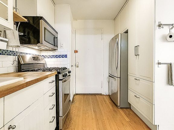 Affordable and Airy at the Continental Gardens. Convenient layout with a nice floor plan. Entry kitchen with stainless steel appliances and plenty of custom cabinets for storage. A spacious living room sits to your left with sunlight flowing in. A built-in custom closet system is installed delivering functional storage space right outside your updated windowed full bath lined with porcelain tiles and a modern white vanity. The king size bedroom offers double exposure and in wall wire concealment creating a minimalistic look. Seamless solid oak hardwood floors throughout.