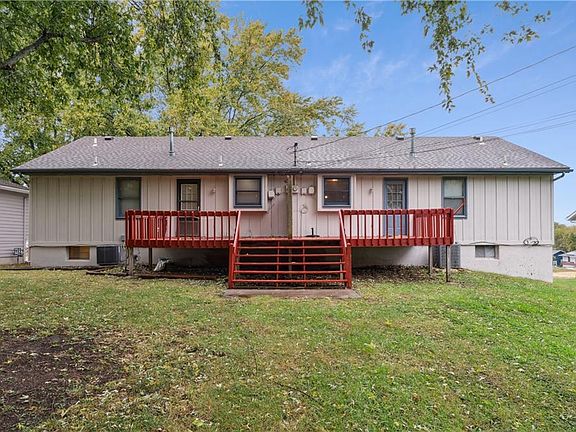 Location! Location! Location! GREAT REVENUE GENERATOR for Investors or Great for Owner-Occupants! Located in charming, historic Harrisonville and convenient to easy HWY access. Mere 20 minute commute to KC Metro. A+ location, only 1 block to elementary school. FULL DUPLEX includes: Each side had is a large raised-ranch style 2 Bedroom/2 Bath unit, with a 3rd non-conforming lower level bedroom, laundry room plus a 1 car attached garage. Some newer paint and ready to move-in for new occupants. Generous room sizes and nice layout for multi-use living. Each unit has private decks. Separate meters for each unit. Both UNITS ARE CURRENTLY VACANT. Easy to show.