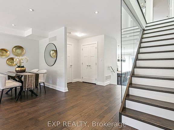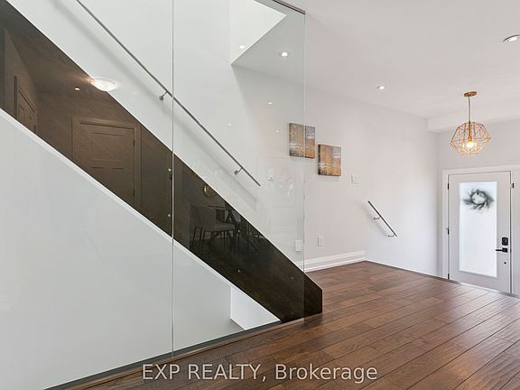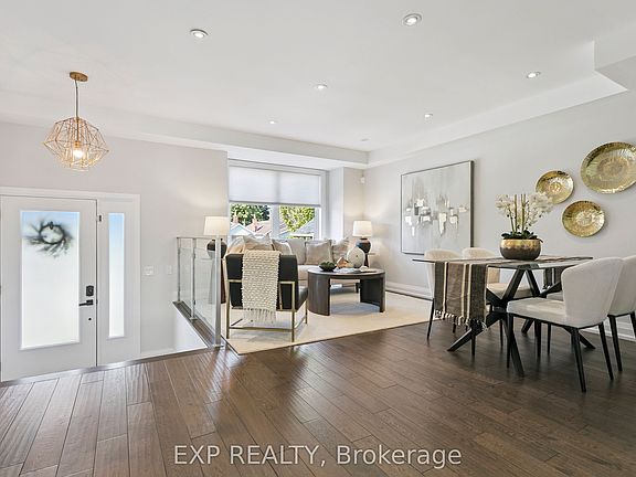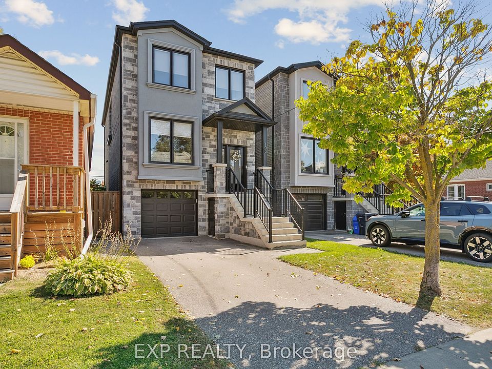 Modern family living in this stunning 2-storey detached home with 2,898 total sq. ft., 3 bedrooms, and 4 bathrooms. Just a 7-minute drive to both Long Branch GO and Mimico GO, a 15-minute walk to the lake and Colonel Samuel Smith Park, and only a 4-minute walk to Twentieth Street Junior School. Plus, you're just moments from Lake Shore Blvd. The main floor showcases an open-concept layout with a formal living and dining area at the front of the home, complete with wide-plank hardwood, pot lights, large windows that fill the space with natural light, and sleek glass railings. At the heart of the home is a chefs kitchen featuring designer pendant lighting, a full-height light grey backsplash, elegant two-tone cabinetry with white uppers and charcoal grey lowers, quartz counters, premium stainless steel appliances, a gas range, and a large centre island with seating for four. Soaring 10' ceilings extend through the kitchen and family room, where an electric fireplace adds warmth and style. The adjoining family room flows seamlessly to the outdoors with a walk-out to a private deck and fenced yard perfect for summer gatherings.Upstairs, the primary retreat offers a walk-in closet and a spa-inspired ensuite with heated floors, sleek vanities, modern tile work, premium fixtures, and a second electric fireplace for added comfort. Two additional bedrooms and a full bath complete the upper level.The finished lower level expands the living space with windows, two storage areas, and flexible room ideal for a home office, gym, media room, or play space, plus a 3-pc bath, direct walk-out to the yard, and a built-in garage with interior access and an EV charging outlet. Steps to Gus Ryder Pool and Health Club and quick access to QEW & 427 highways.