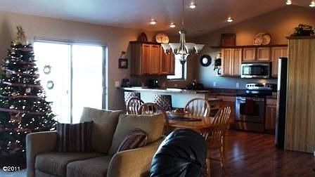 Wonderful newer home with an open floor plan,vaulted ceilings and 3+ garage. Main level features kitchen with hickory cabinets, s/s appliances, brkfst bar, dining area,laundry rm with lots of storage and master bed/bath with walk-in closet,double sinks & jetted tub. Family room downstairs with fireplace and brick surround & 2 lrg bedrms. Nicely landscaped,fenced yard with sprinklers,shed & dog run. Hickory cabinets in the kitchen. Lots of storage throughout! R19 insulation in the walls and R38 in the ceiling.