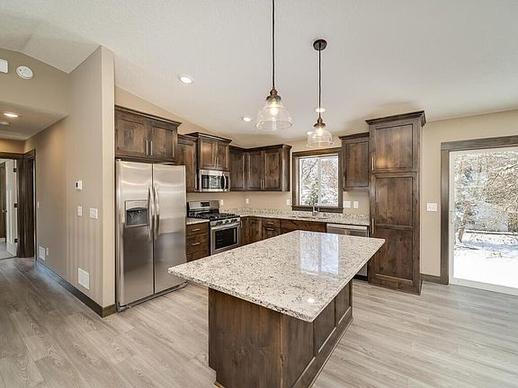 Brand New Custom built home with a spacious open floor plan, vaulted main level and mstr bdrm, wood rails, full Granite kitchen with Knotty Alder cabinetry throughout. Spacious private mstr suite with 6' whirlpool tub and a separate shower. All appliances included and room for expansion in the unfinished walkout lower level. Three stall garage!! Fully sodded yard comes complete with a in ground sprinkler system included. Move In Now!! Hurry!!