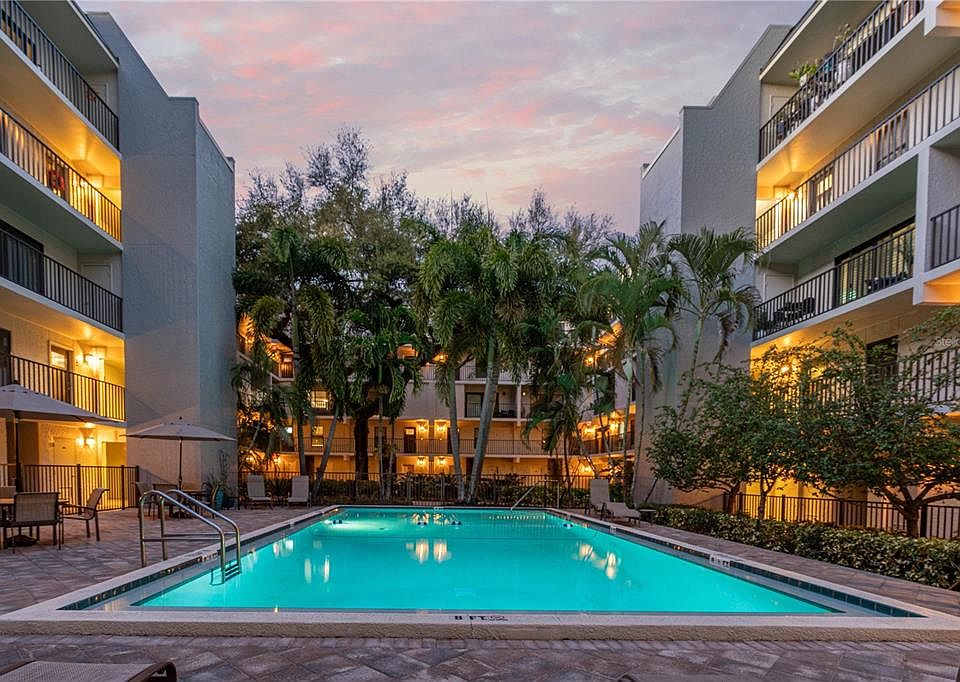 Beautifully landscaped courtyardHeated poolGas grillLarge storage room closetTwo balconiesHurricane impact windows