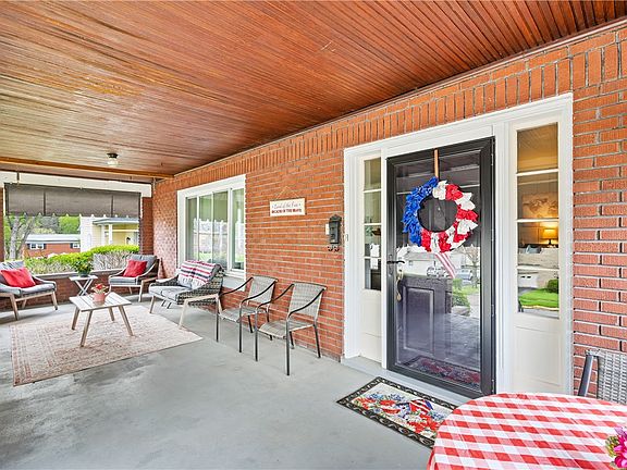 Classic Brick Home with Covered Front Porch! Oversized Living Room opens to Dining Room with Built in China Cabinetry and Window Seat! Equipped White Kitchen with new Counter Top and Sink to be installed prior to closing. Sunroom off Kitchen Previously Housed Washer and Dryer. Four Nicely Sized Bedrooms Plus Master Features Two closets. Updated Main Bathroom. Open Basement with Half Bath.