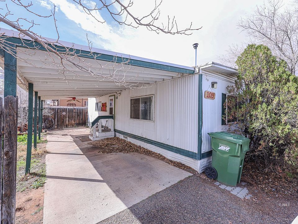 This 1971 mobile is a fixer upper - it's 1032 sf and has 2 bedrooms, 1 full bath, kitchen, dining and living room w/pellet stove, the laundry space with washer and dryer is in the kitchen area. Home has a covered carport and fenced back yard. The home needs love, some repair, new carpet and paint - due to the age of home it will require cash to purchase. Give us a call to take a look at this home and make us an offer we can't refuse. Our agents are available 7 days a week for your convenience.
